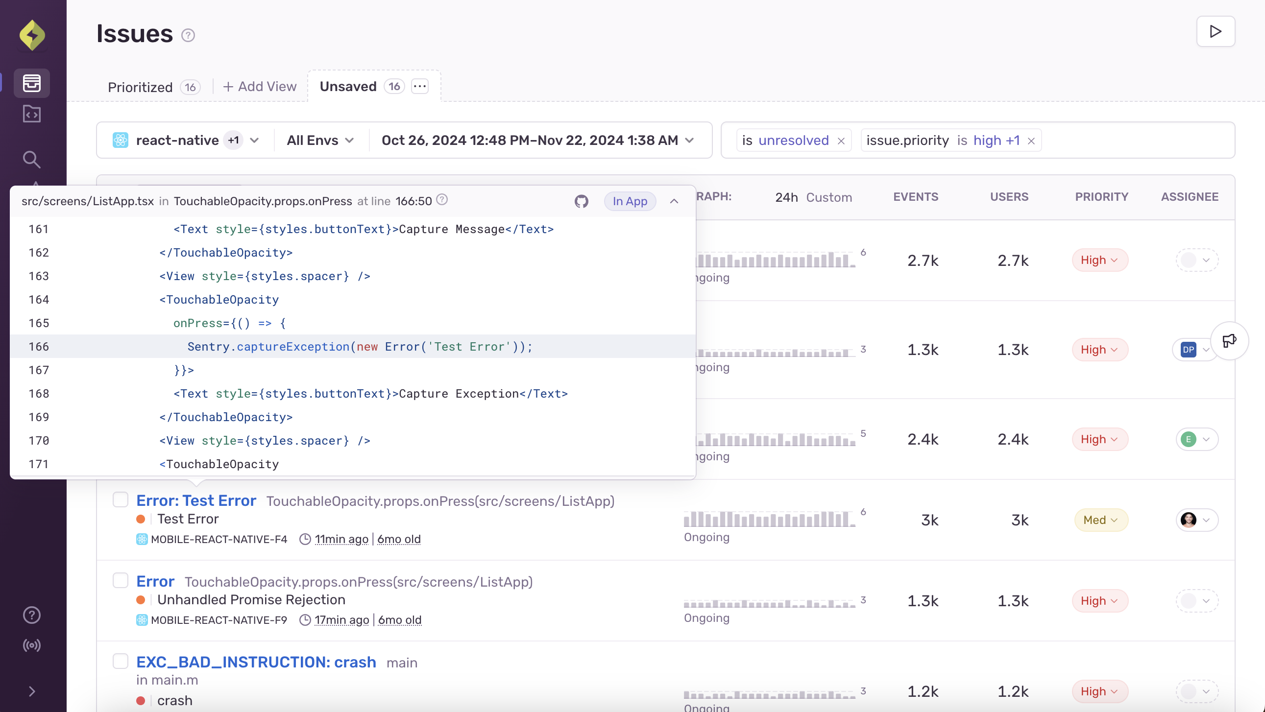 You can get more insights with LogRocket. LogRocket records user sessions and identifies bugs as your users use your app. You can filter sessions by update IDs and also connect to your LogRocket account on the EAS dashboard to get quick access to your app's session data.