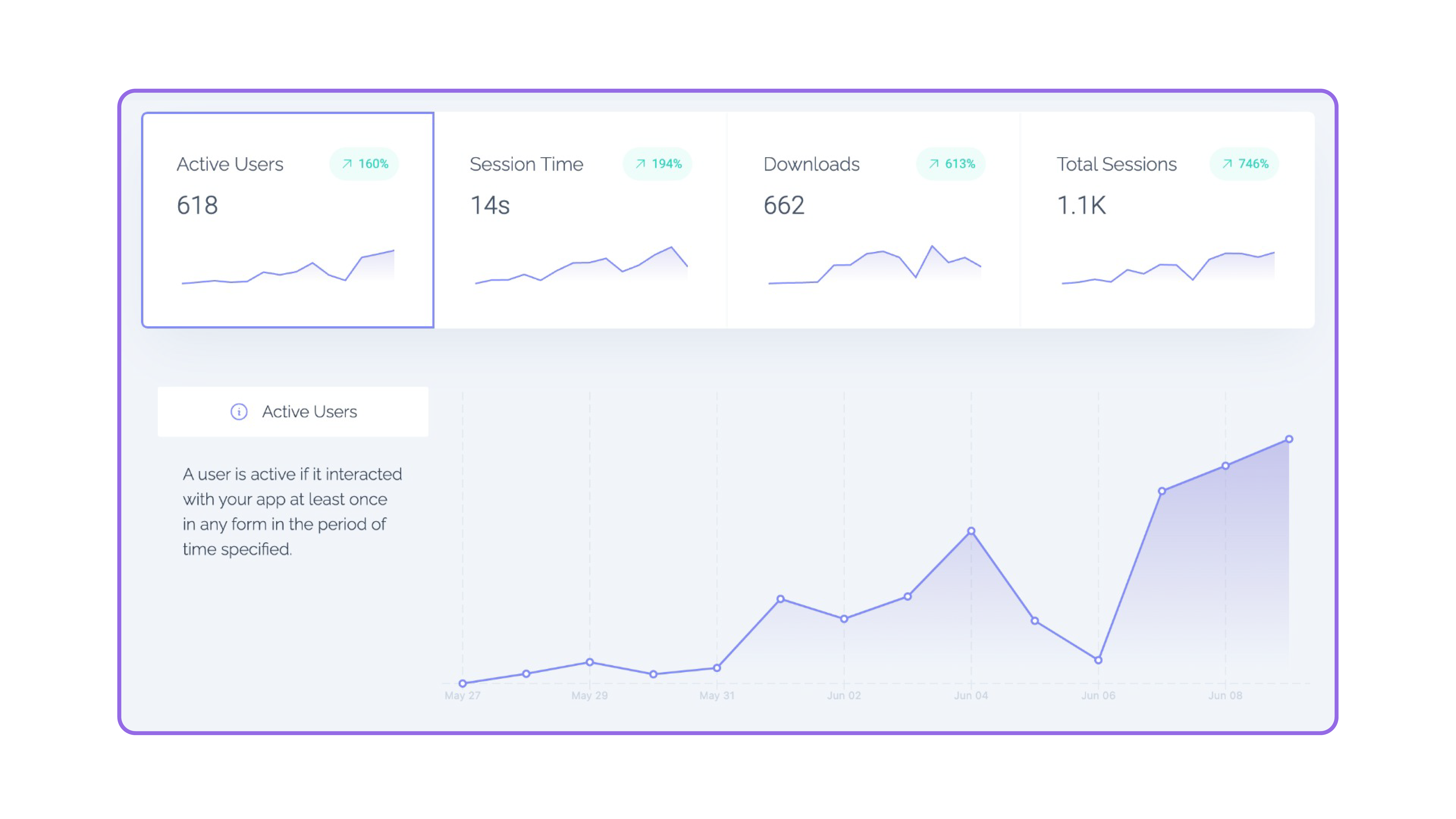 Once your app is released, you can track anonymized usage data to give you insights on how users use your app. This data includes which updates are in use, when users experience bugs, and more.