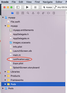 { "expo": { "plugins": [ [ "expo-notifications", { "sounds": ["local/path/to/mySoundFile.wav"] } ] ] } }